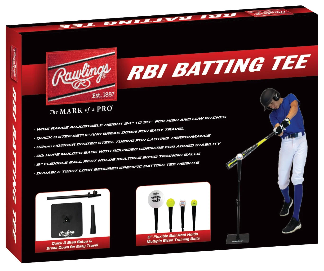 - DESIGNED FOR BASEBALL/SOFTBALL PLAYERS OF ALL AGES - the Rawlings RBI Batting Tee features an 8" flexible ball rest to hold multiple sized training balls